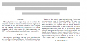 Quoting shenoyvarun86: “3 intelligent chaps submitted a paper to the ninth annual Florida-based World Multi-Conference on Systemics, Cybernetics and Informatics (WMSCI). The paper was generated randomly in a software they created (called SCIgen) . All this because the folks at WMSCI spammed students constantly seeking paper submissions and entry fees”